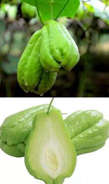 佛手瓜,又名合手瓜、棒瓜、洋瓜、豐收瓜、隼人瓜、安南瓜、棚瓜、虎兒瓜等,原產于墨西哥、中美洲和西印度群島,1915年傳入中國,在中國江南一帶都有種植,以云南、貴州、浙江、福建、廣東、四川、臺灣最多。含有豐富營養,即可做菜,又能當水果生吃。加上瓜形兩掌合十,有佛教祝福之意,深受人們喜愛。